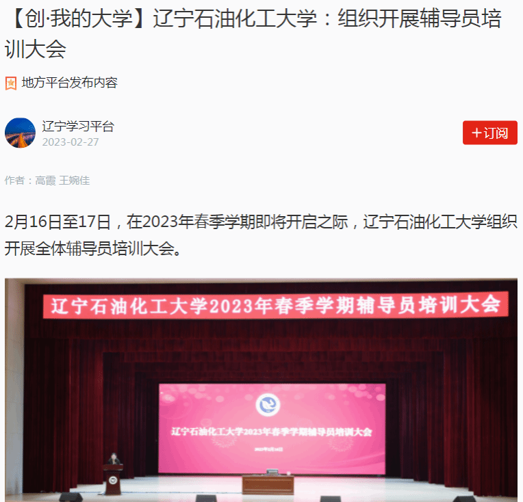 編者按:近日,學習強國遼寧學習平臺、遼寧日報·北國號、人民日報客戶端·人民號等媒體平臺對我校在2023年春季學期即將開啟之際,組織開展全體輔導員培訓大會進行了宣傳報道?,F將相關報道轉載如下: