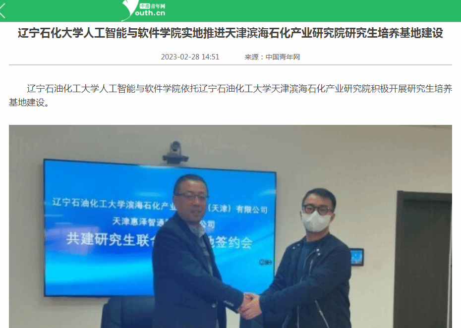 編者按:近日,中國青年網對我校人工智能與軟件學院依托遼寧石油化工大學天津濱海石化產業研究院積極開展研究生培養基地建設進行了宣傳報道?,F將相關報道轉載如下:
