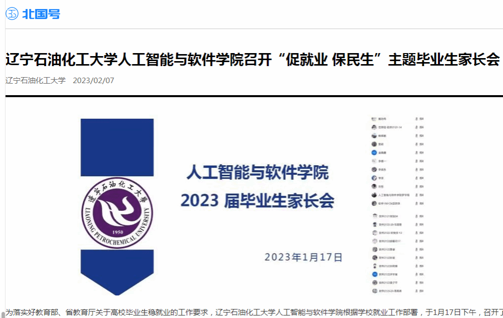 編者按:近日,遼寧日報·北國號、人民日報客戶端·人民號等媒體平臺對我校人工智能與軟件學院召開“促就業 保民生”主題畢業生家長會進行了宣傳報道。現將相關報道轉載如下:
