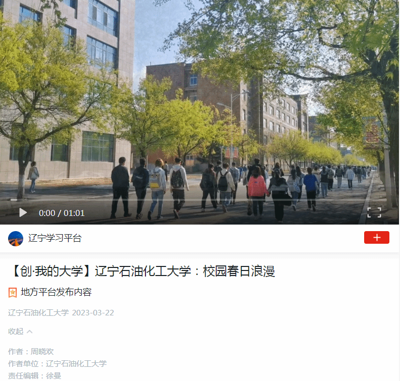 編者按:近日,學習強國遼寧學習平臺、中國大學生在線、人民日報客戶端·人民號、遼寧日報·北國號等媒體平臺對我校春日美景視頻進行了宣傳報道?,F將相關報道轉載如下: