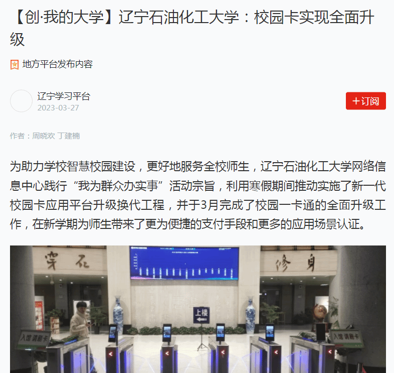 編者按:近日,學習強國遼寧學習平臺、人民日報客戶端·人民號、遼寧日報·北國號等媒體平臺對我校網絡信息中心踐行“我為群眾辦實事”活動宗旨,利用寒假期間推動實施了新一代校園卡應用平臺升級換代工程,并于3月完成了校園一卡通的全面升級工作,在新學期為師生帶來了更為便捷的支付手段和更多的應用場景認證進行了宣傳報道。現將相關報道轉載如下: