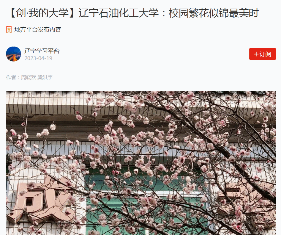 編者按:近日,學習強國遼寧學習平臺、人民日報客戶端·人民號等媒體平臺對我校春季美景以圖集形式進行了宣傳報道?,F將相關報道轉載如下: