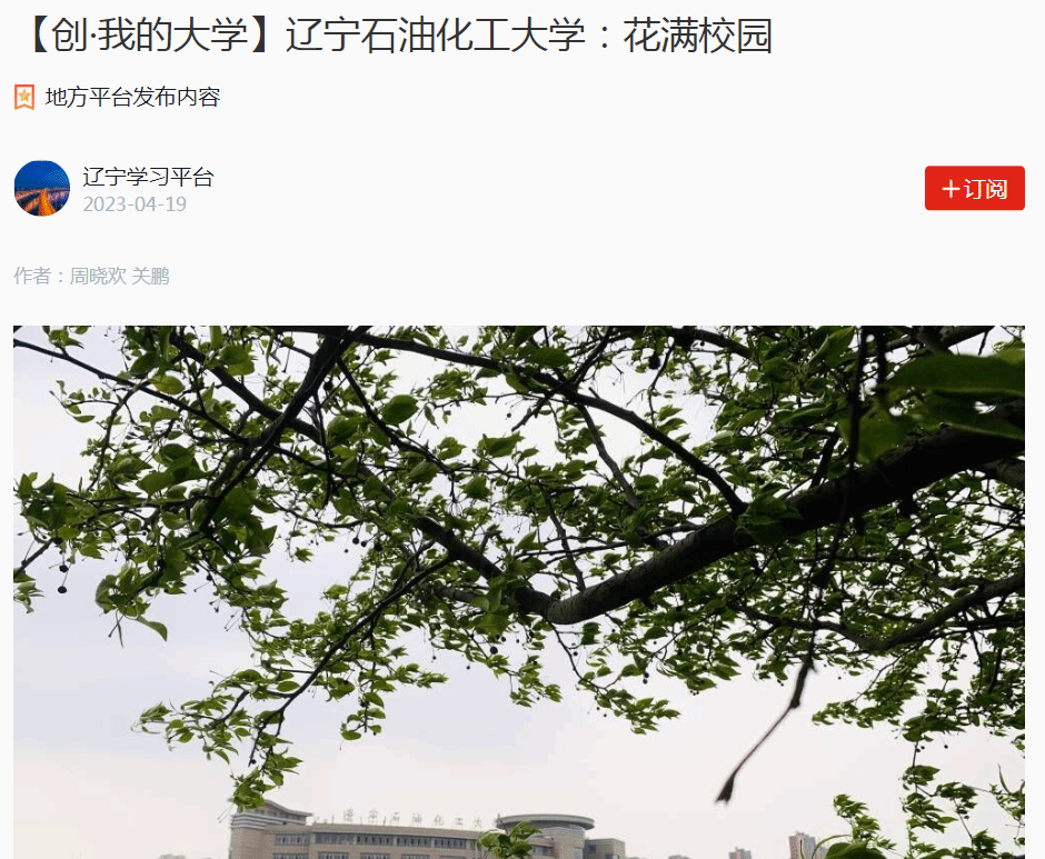 編者按:近日,學習強國遼寧學習平臺、人民日報客戶端·人民號等媒體平臺對我校春季美景以圖集形式進行了宣傳報道?,F將相關報道轉載如下: