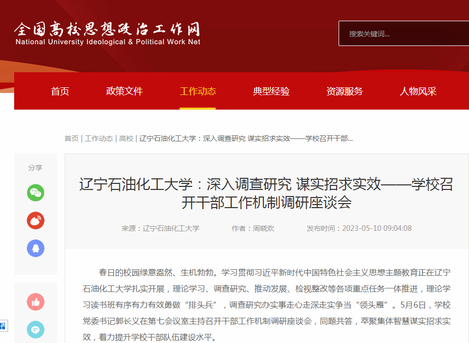 編者按:近日,全國高校思想政治工作網、遼寧日報·北國號等媒體平臺對學校黨委書記郭長義在第七會議室主持召開干部工作機制調研座談會,同題共答,萃聚集體智慧謀實招求實效,著力提升學校干部隊伍建設水平進行了宣傳報道。現將相關報道轉載如下: