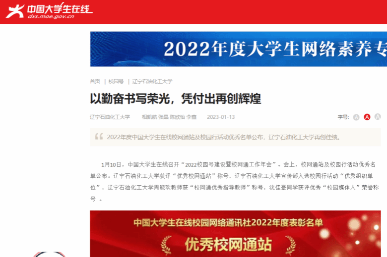 編者按:近日,中國大學生在線網站對我校2022年在校網通站及校園行活動獲得佳績開展的總結進行了宣傳報道?,F將相關報道轉載如下: