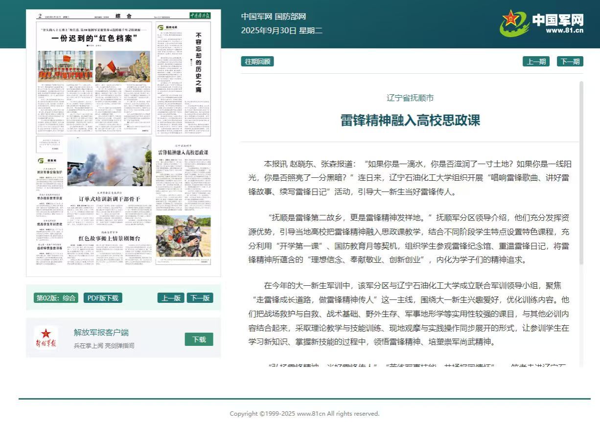 中國軍網:http://www.81.cn/szb_223187/gfbszbxq/index.html?paperName=zggfb&paperDate=2025-09-30&paperNumber=02&articleid=964254