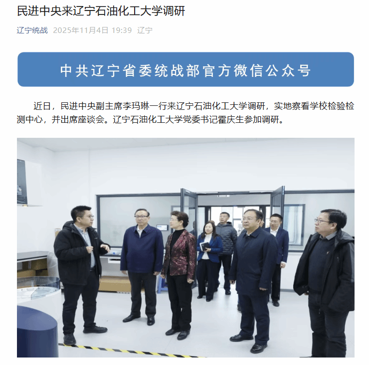 編者按:近日,民進中央副主席李瑪琳一行來遼寧石油化工大學調研,實地察看學校檢驗檢測中心,并出席座談會。遼寧統戰微信公眾號對此進行了宣傳報道?,F將相關報道轉載如下: