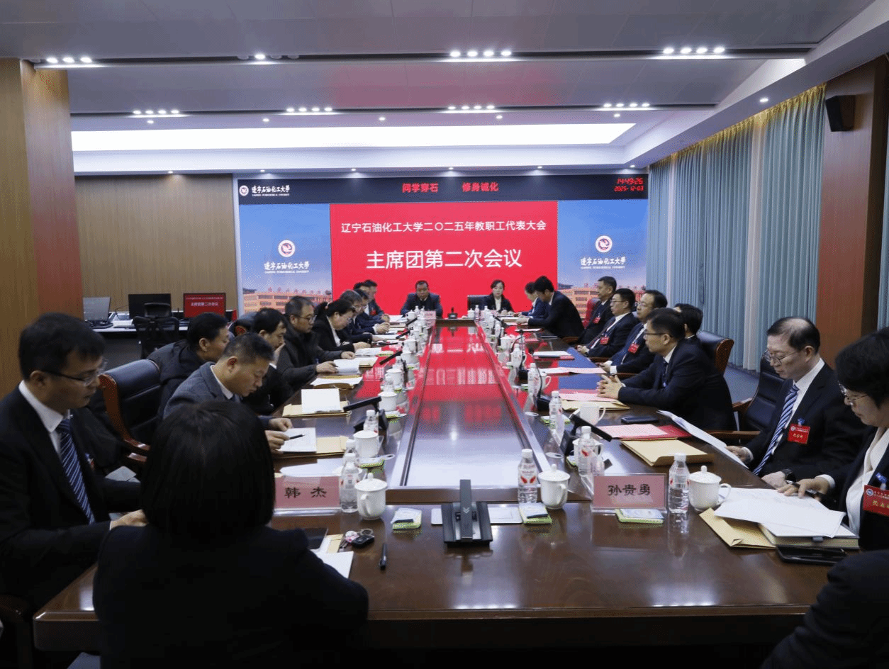 12時50分,主席團第一次會議準時召開。會議依次審議通過了大會議程、大會日程,對《關于學校崗位績效標準調整方案和退休人員補貼2026年發放方案》(草案)、《遼寧石油化工大學二級單位績效考核實施辦法(試行)》的補充說明(草案)進行了審議,為大會的順利召開筑牢了前期基礎。