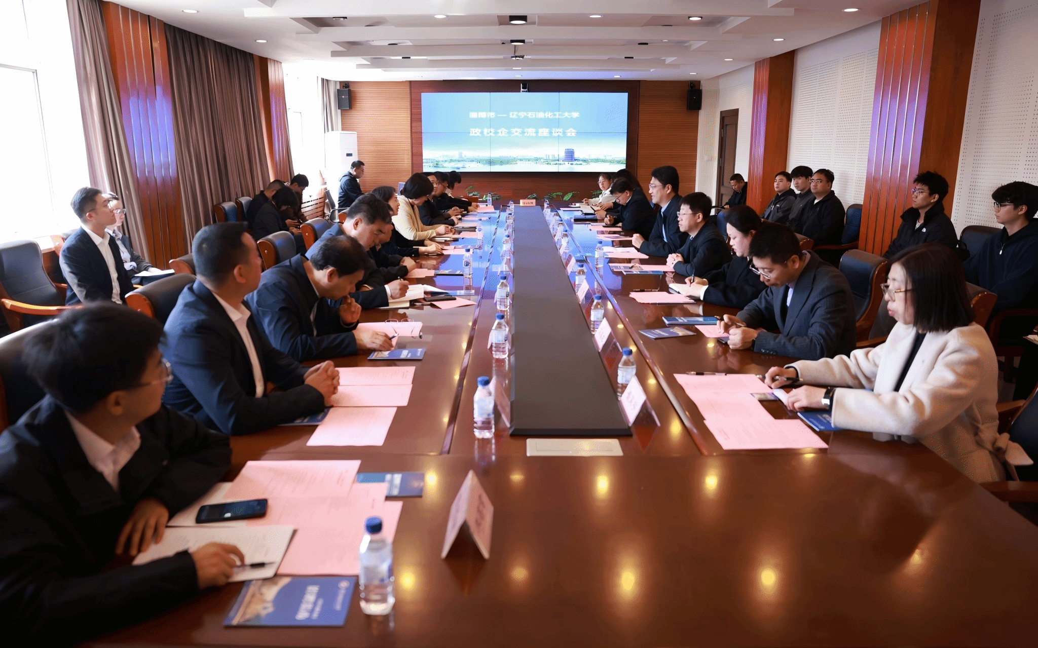 上午10點,校政企三方在經濟管理學院408會議室舉行合作簽約儀式和座談。副校長王強出席會議,各學院相關專業主管就業工作的副書記參會,學生處處長、招生就業處處長趙曉東主持會議。淄博市政府副市長邊江風,市人社局黨組書記、局長王潤芹,率企業代表出席。