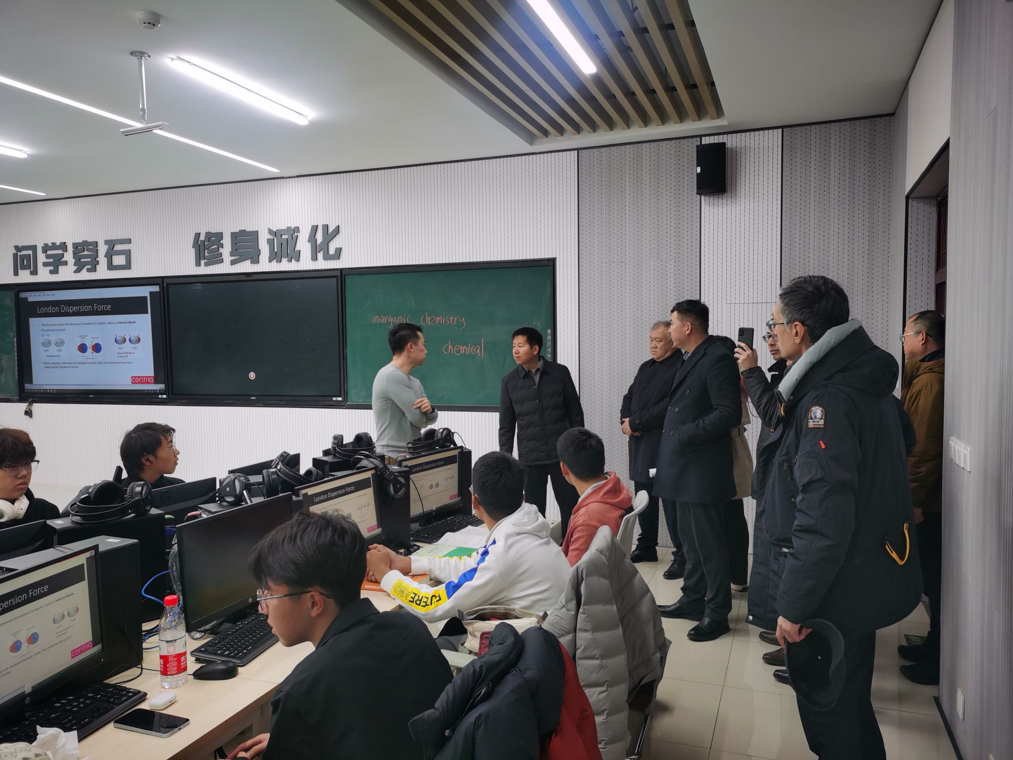 國際交流合作處副處長任天舒、石油化工學院院長王吉林、工程訓練中心主任孫文志、體育學院院長劉欣、國際教育學院副院長劉曉亮、創新創業學院院長馮錫煒及國際交流合作處相關人員陪同參觀。(撰稿人:于三辰 校對人:任天舒 審稿人:何川/張永利 攝)