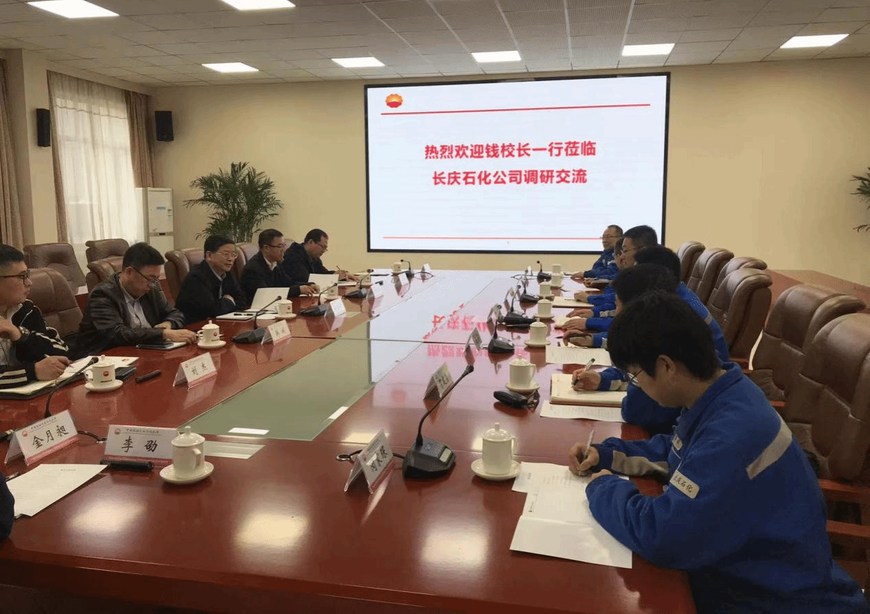 公司領導對學校多年來的關注與支持表示感謝,對校友的工作作風與貢獻表示高度認可,對學校將安全管理、智能制造、低碳生產理念深植于日常教育教學的模式給予高度評價,對學校不忘初心,傳承“撫油精神”,服務能源行業的情懷表示高度贊賞,并希望學校將更多的優秀畢業生推薦、輸送到長慶石化。公司領導也對我校的低成本碳捕集、氫能源應用等技術表示認可,雙方約定后續將開展深入交流與實踐。
