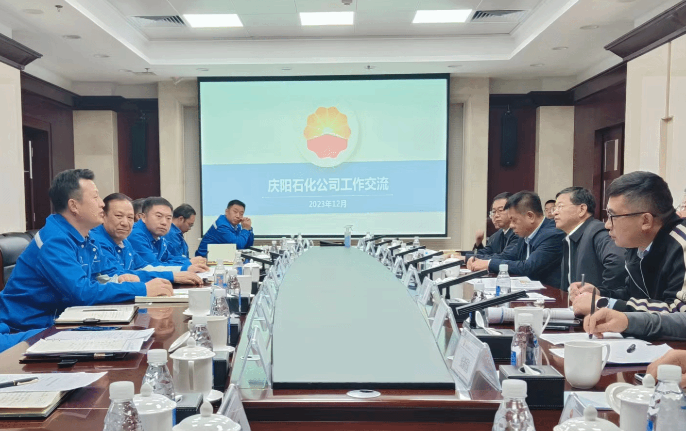 在中國石化慶陽石化公司,學校與公司共同召開科技研討交流會,慶陽石化公司執行董事、黨委書記桑運超,總經理、黨委副書記何明川出席會議。