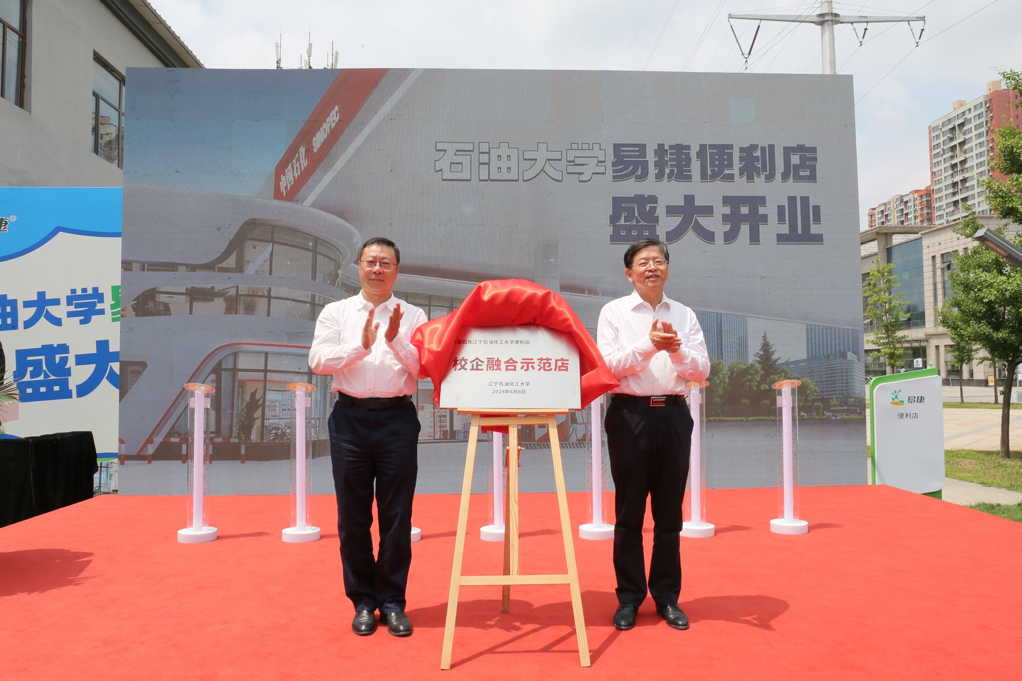隨后,錢建華與羅曉東代表雙方為“校企融合示范店”揭牌。到場的領導、嘉賓為中國石化遼寧石油化工大學易捷校園旗艦店做開業儀式啟動,共同見證東北區域首個易捷校園旗艦店正式開業。