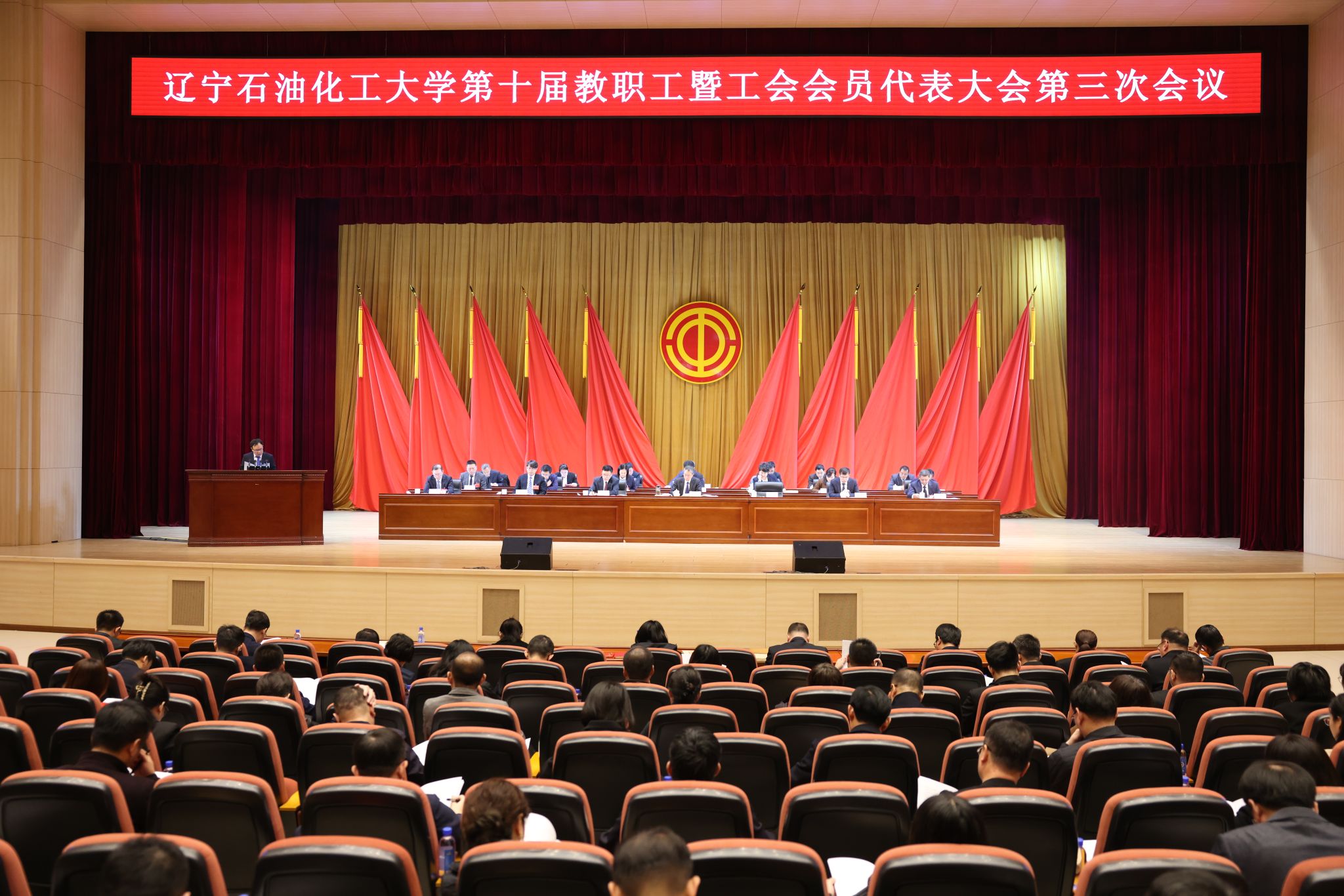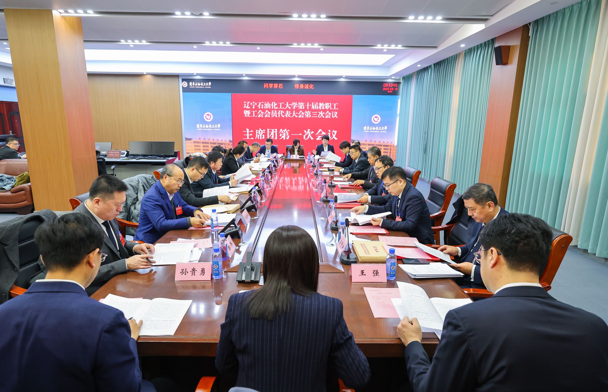 會上,主席團第一次會議審議通過了大會議程和大會日程,討論審議了行政工作報告(草案)、工會工作報告(草案)、財務工作報告(草案)和《遼寧石油化工大學章程(2025年修訂)》(草案)。