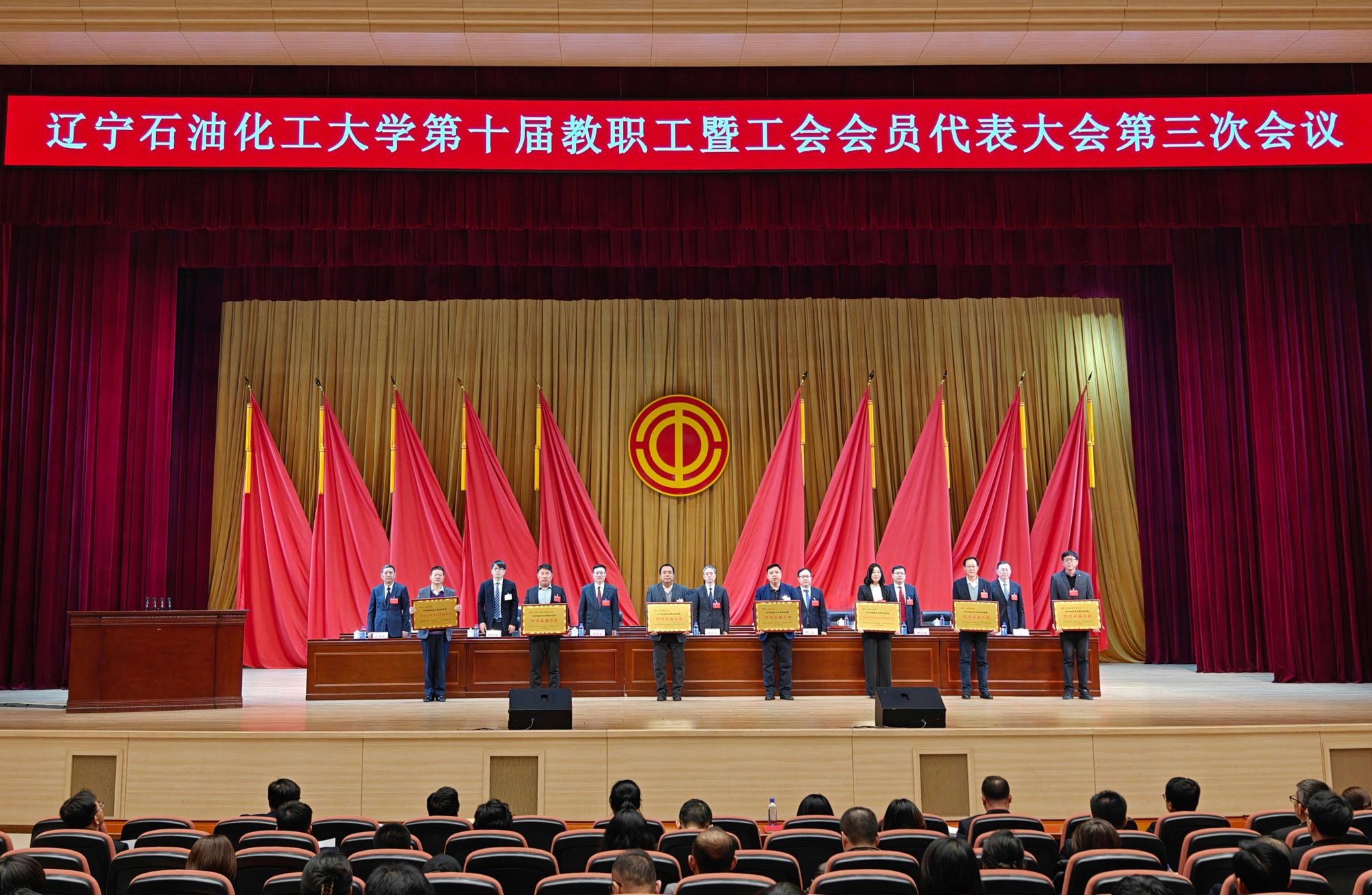 在第二次全體會議上,大會表決通過了行政工作報告決議、工會工作報告決議、財務工作報告決議、《遼寧石油化工大學章程(2025年修訂)》決議,并對榮獲學校工會工作先進集體、先進個人以及優秀提案獎的獲獎代表進行表彰。