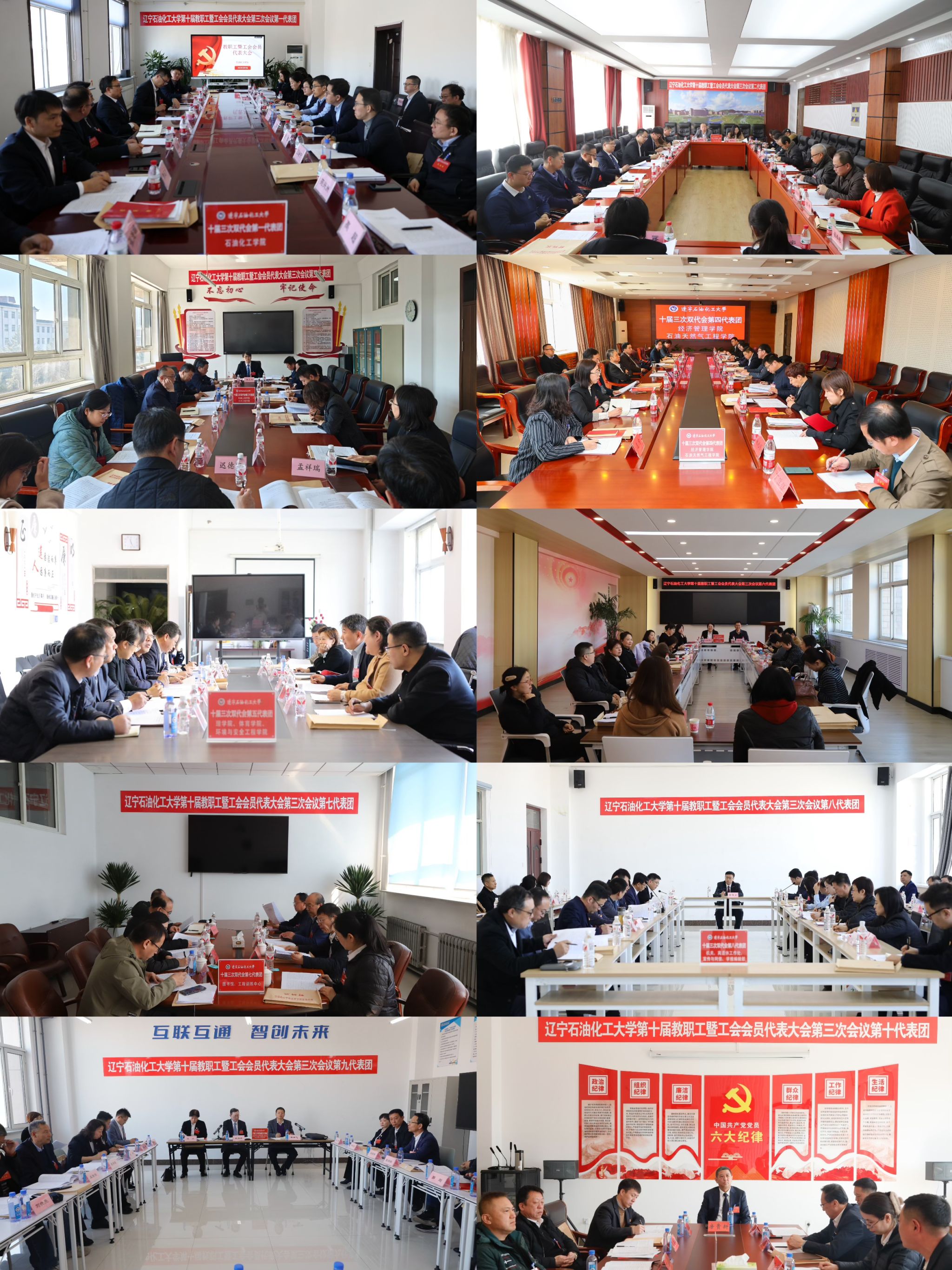 隨后,各代表團圍繞行政工作報告(草案)、工會工作報告(草案)、財務工作報告(草案)、《遼寧石油化工大學章程(2025年修訂)》(草案)等進行分組討論。校領導分別出席所在代表團,與代表們進行熱烈討論,廣泛聽取意見建議。與會代表牢記重托、認真履職,聚焦大會主要任務,圍繞做好學校2025年工作建睿智之言,獻務實之策。大家一致認為,報告主題鮮明、站位高遠、指向精準、催人奮進,回顧2024年工作實事求是、客觀全面,部署2025年任務目標明確、舉措可行,為學校全面開啟建設能源領域特色鮮明的一流高水平應用型大學新征程厘清了思路、指明了方向。