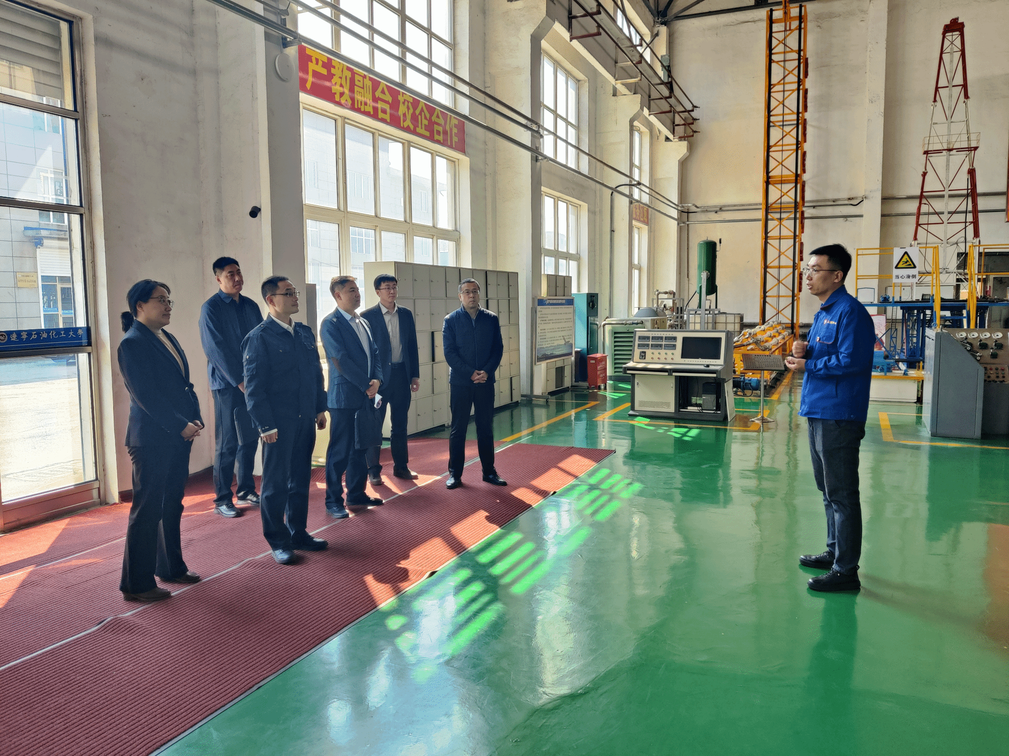 隨后,曲華鋒、劉暢一行先后參觀了學校石油化工產業鏈實物仿真基地、石油化工過程運行優化與節能技術國家地方聯合工程實驗室,聽取了相關教師的工作匯報。