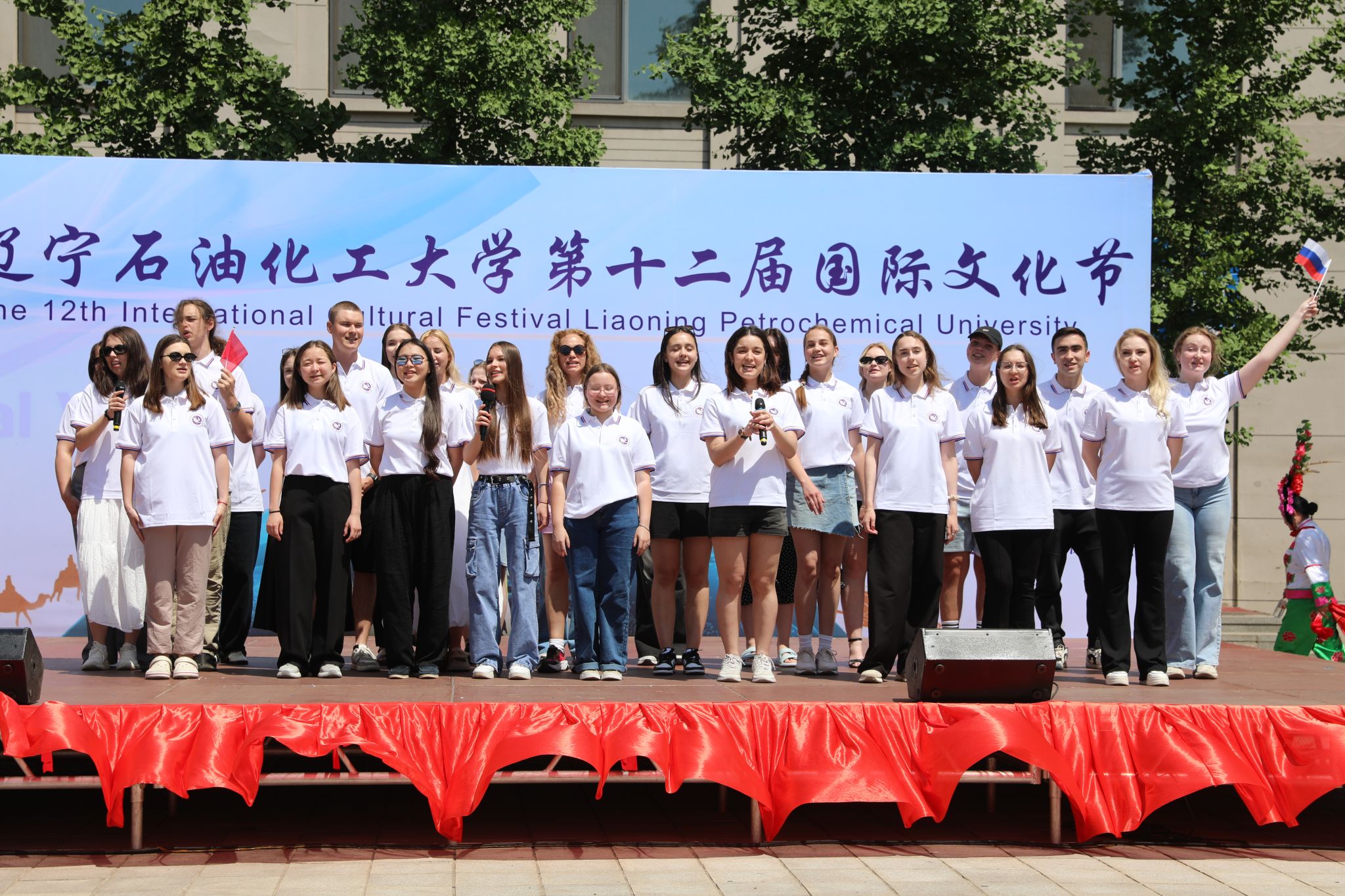 郭長義宣布國際文化節正式開幕,現場掌聲雷動,歡呼聲響徹校園。