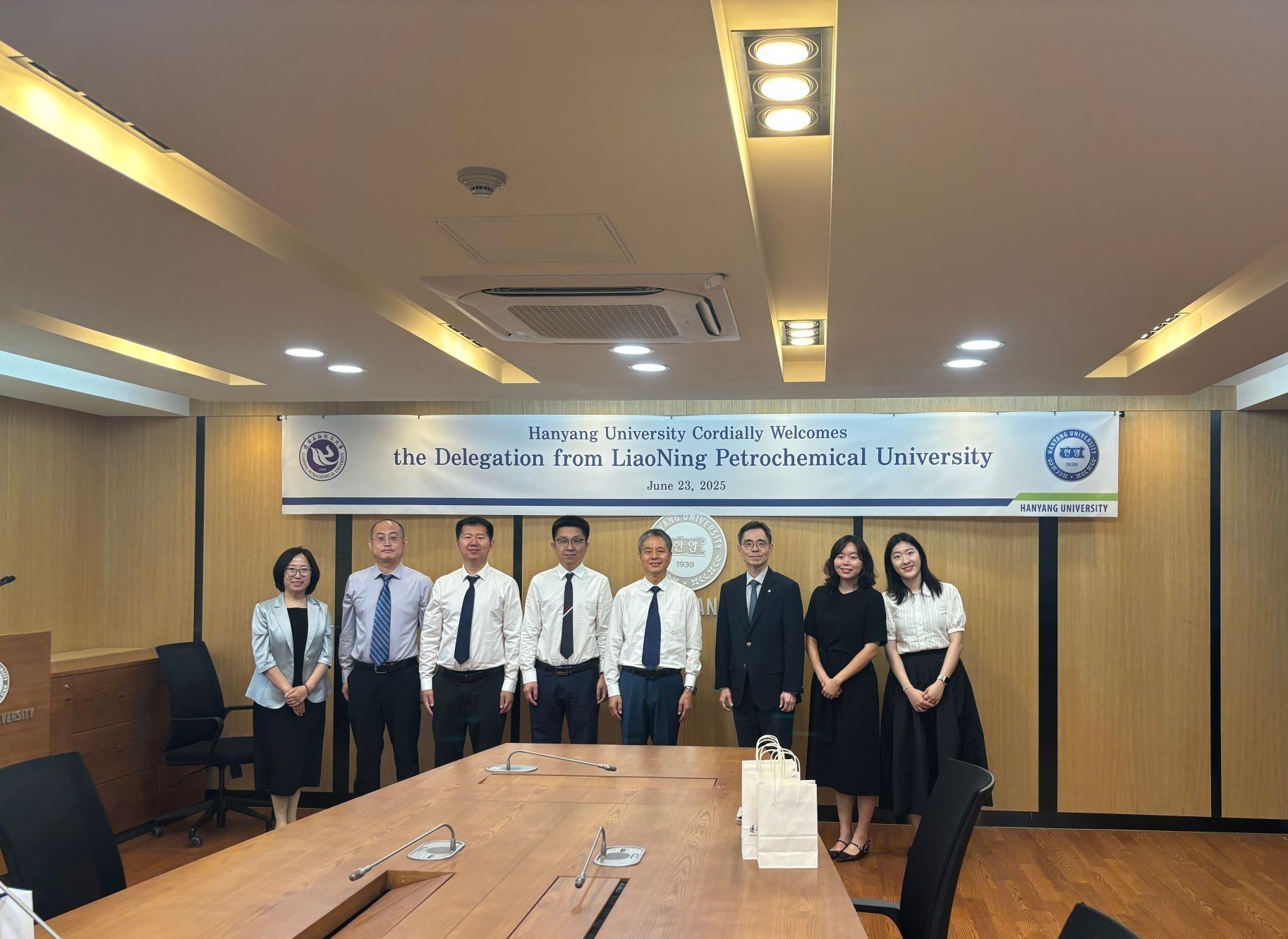 6月23日下午,代表團一行訪問漢陽大學與該校國際處處長金翰承等舉行了座談。金翰承首先介紹了漢陽大學的創辦歷史、文化傳承及其在科學研究和工業應用領域的成果。郭長義表示,漢陽大學作為韓國頂尖研究型大學,其優質的教育資源可以為我校學生提供寶貴的學習機會,期待雙方在優勢學科領域進一步深化合作。雙方簽訂本科生交流互換協議。