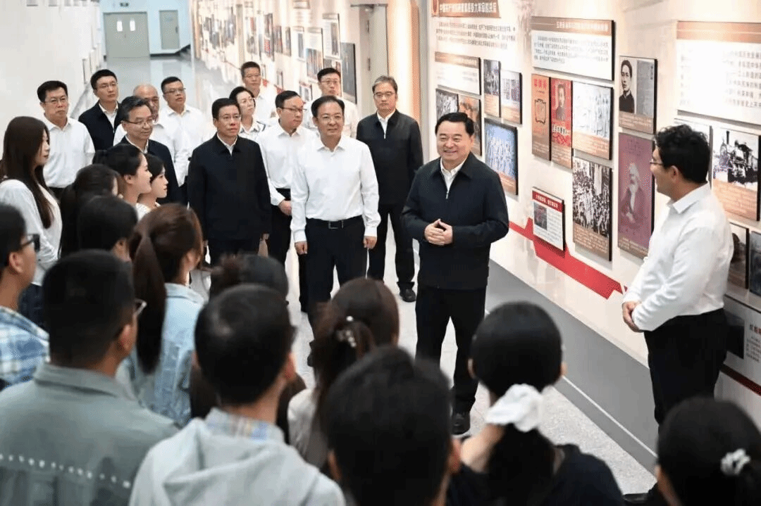 省委書記、省人大常委會主任郝鵬在遼寧石油化工大學歷史文化教育基地,與正在上思政課的師生互動交流。