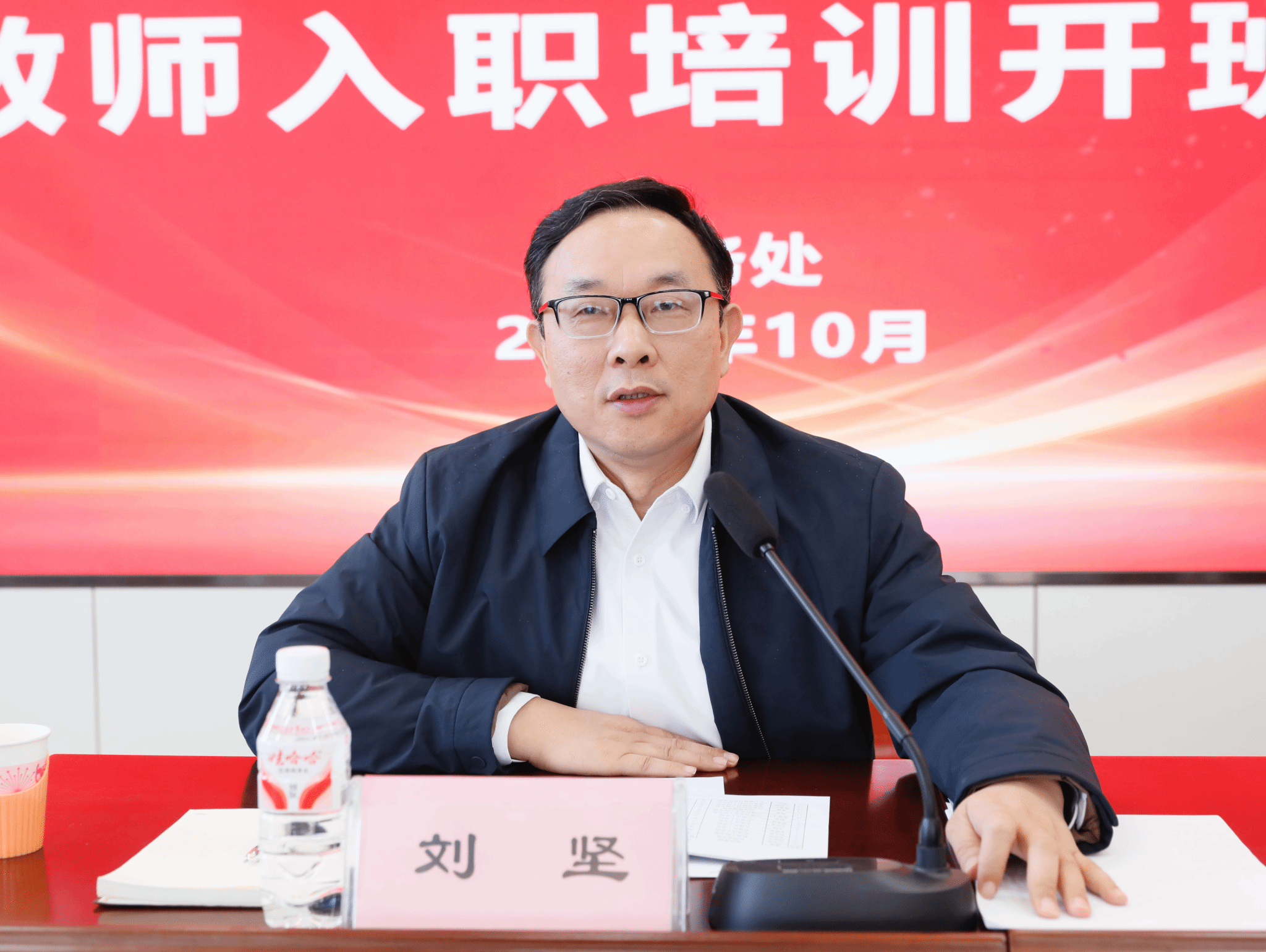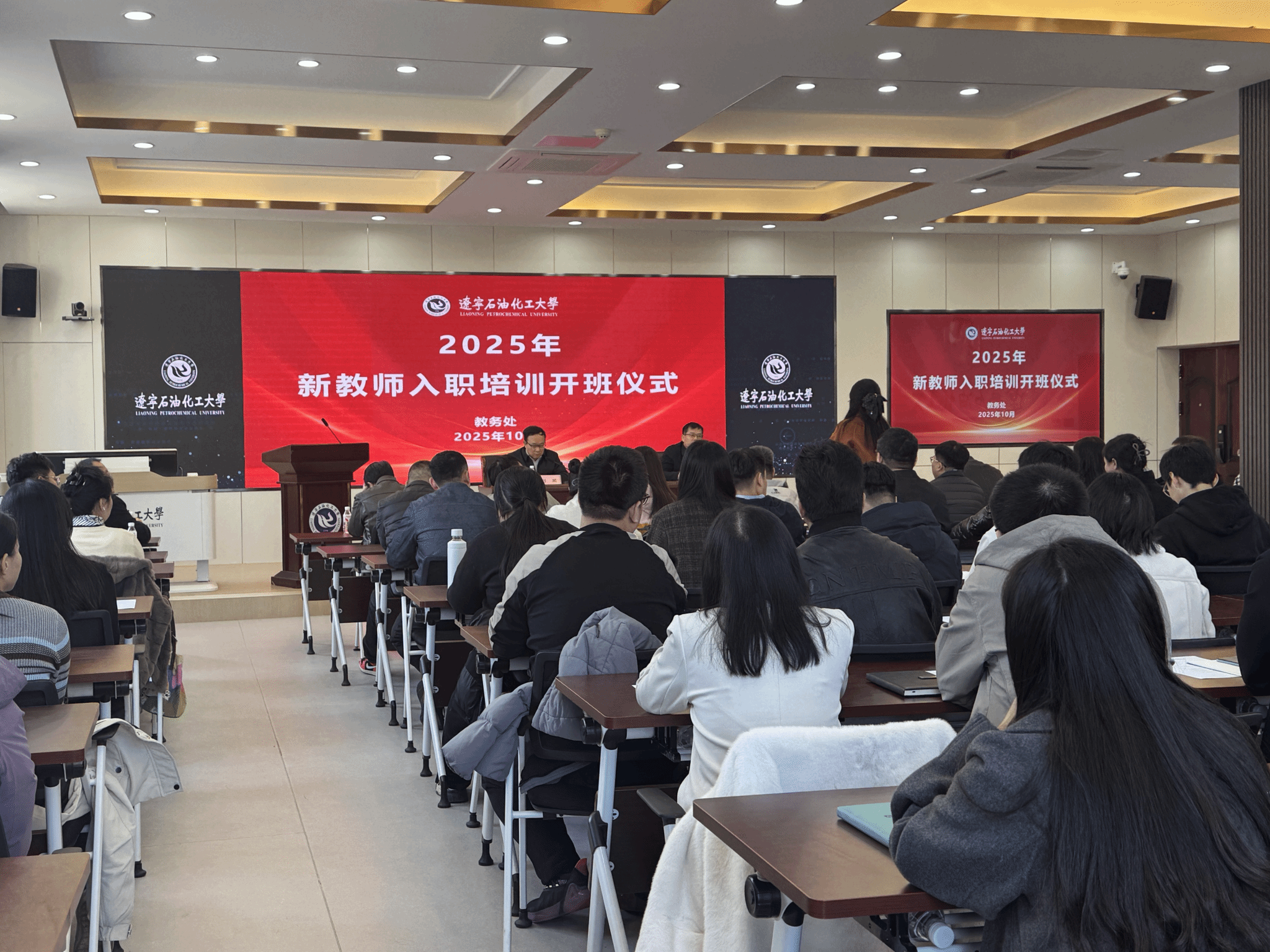 10月23日上午,2025年新教師入職培訓開班儀式在大學生活動中心201(智慧大講堂)舉行。校長劉堅、副校長曹江濤出席開班儀式,教務處、人事處、科研處、研究生院等部門主要負責同志,教師代表及76位新入職教師參加開班儀式,儀式由曹江濤主持。