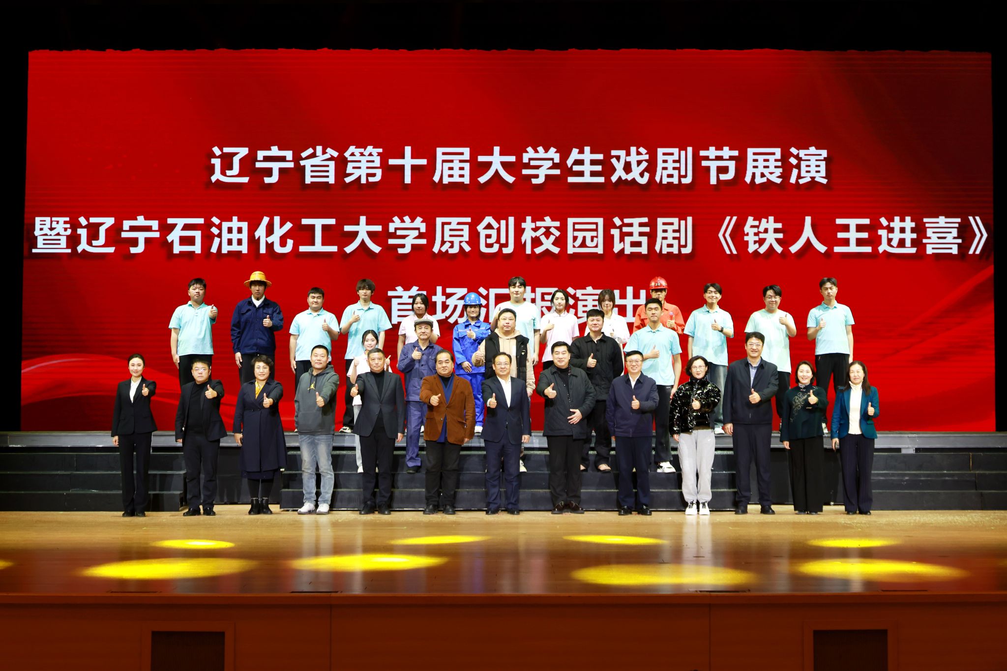 據悉,話劇《鐵人王進喜》是為紀念鐵人王進喜誕辰102周年,由學校黨委統籌策劃、團委具體組織實施的重點文化項目。全劇創作排演歷時三個多月,參演師生達百余人,是學校構建以紅色文化為底蘊的育人體系、打造特色思政品牌的重要實踐。此次亮相省大學生戲劇節,既是學校文化育人成果的集中展示,也將進一步激勵廣大師生傳承鐵人精神,為服務國家能源事業和推動新時代遼寧振興發展貢獻遼石化大力量。(撰稿人:包涵 校對人:張國慶 審稿人:孔祥慧/包涵 攝)