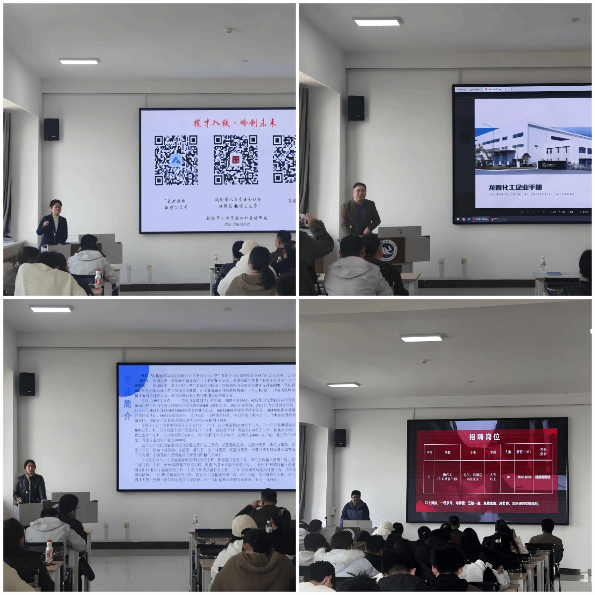 政策宣講結(jié)束后,鐵嶺中德電纜有限公司、鐵嶺中油機械設(shè)備制造有限公司、遼寧龍首精細化工有限公司三家企業(yè)代表分別介紹各自發(fā)展歷程、主營業(yè)務(wù)、人才需求、薪酬待遇與職業(yè)發(fā)展通道,精準推送適配我校學(xué)子的優(yōu)質(zhì)崗位,與現(xiàn)場學(xué)子面對面交流答疑,搭建起直通企業(yè)的就業(yè)橋梁,實現(xiàn)供需精準對接。此外還有27家企業(yè)提供了就業(yè)崗位累計120余個。