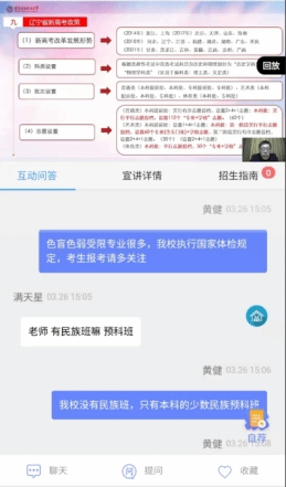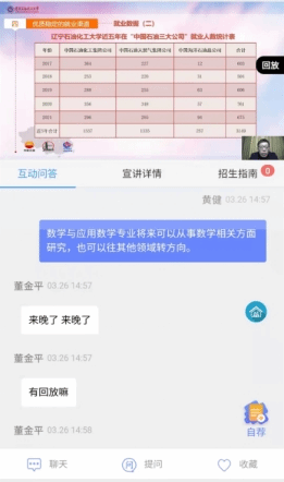 直播開始前,首先播放了學(xué)校招生宣傳片。直播中,黃健老師分別從學(xué)校辦學(xué)優(yōu)勢和特色、學(xué)校招生錄取政策、遼寧省新高考招生政策、志愿填報方法和技巧等方面向考生做了全方位介紹;同時,還與考生進(jìn)行了線上互動,在線解答了招生專業(yè)、新高考政策、志愿填報等相關(guān)問題,受到了廣泛關(guān)注,進(jìn)一步擴(kuò)大了學(xué)校社會影響力與知名度。