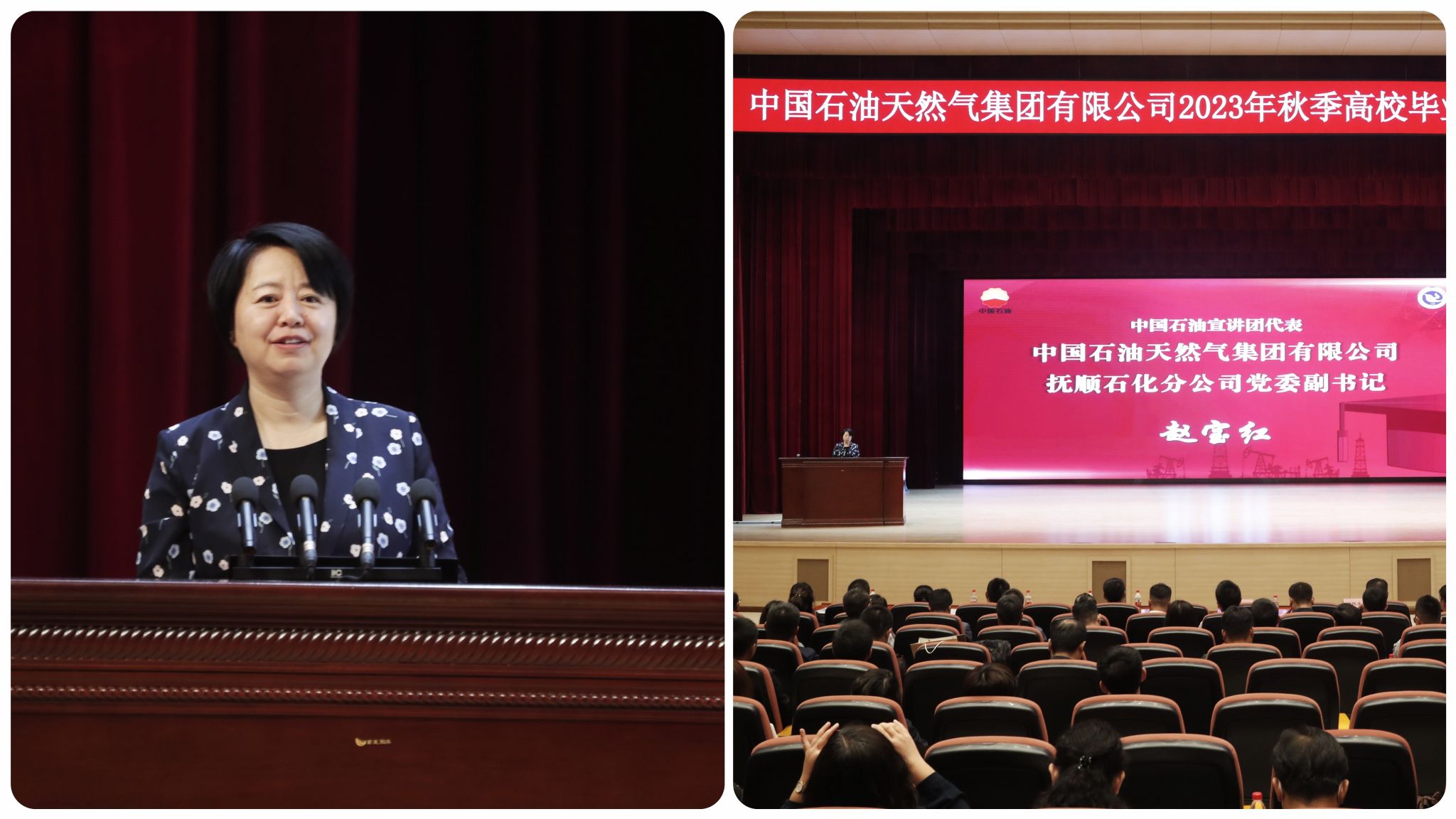 趙寶紅代表中國石油感謝我校精心籌備和周密組織招聘宣講會(huì)。她充分肯定我校為新中國石油工業(yè)和石油高等教育作出的重要貢獻(xiàn),對我校長期支持和關(guān)心中國石油建設(shè)和發(fā)展表示感謝。趙寶紅還介紹了中國石油未來產(chǎn)業(yè)趨勢、發(fā)展前景以及人才需求情況,她熱情呼吁我校畢業(yè)生立志“我為祖國加油”、做堪當(dāng)民族復(fù)興重任的時(shí)代新人,創(chuàng)造精彩未來、譜寫精彩人生。