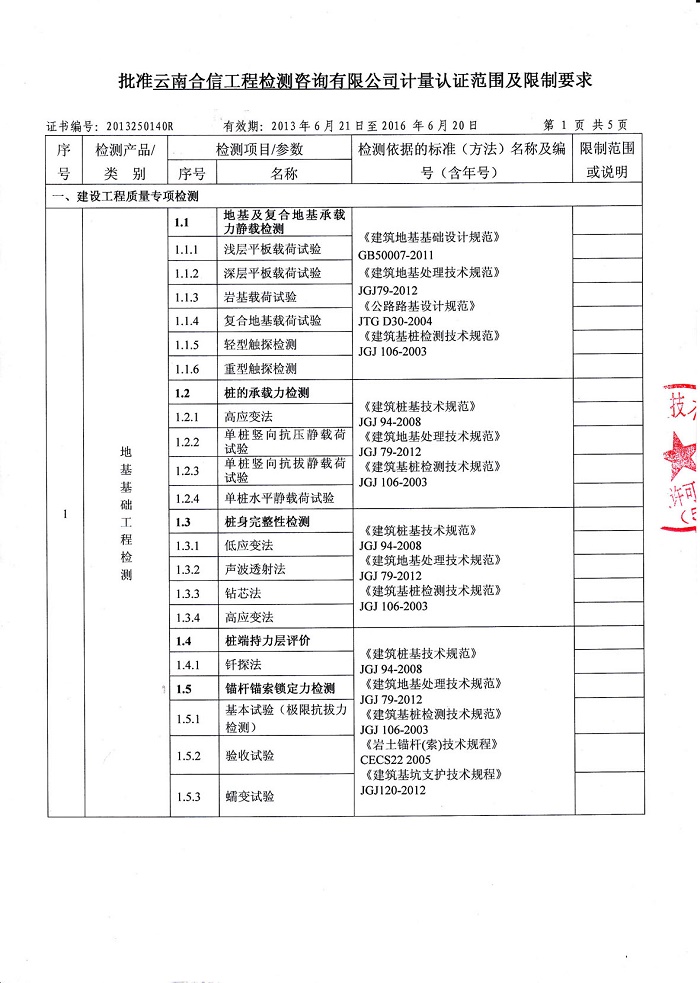 云南合信工程檢測咨詢有限公司地基基礎工程檢測主要能力為: