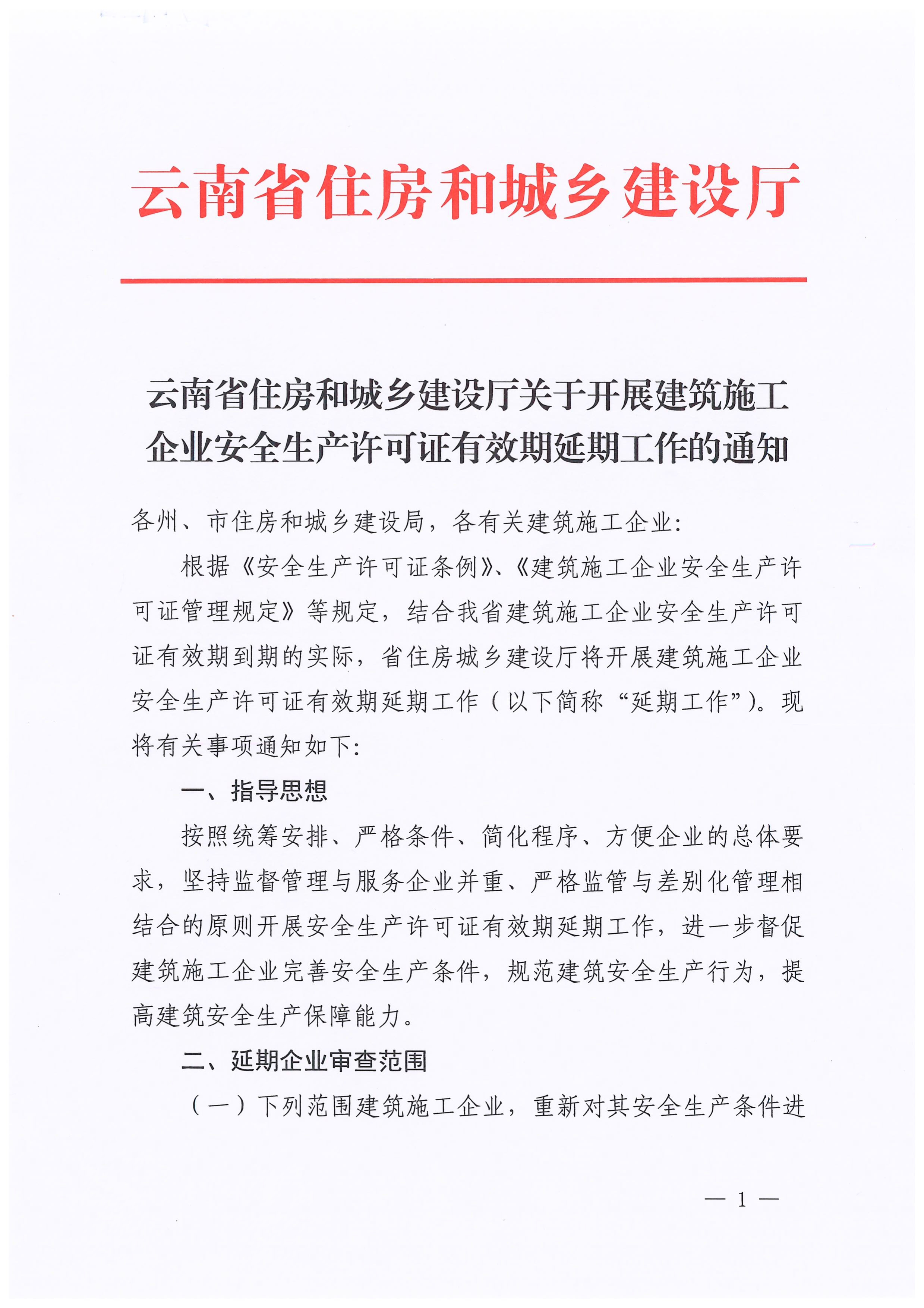 省住建廳關(guān)于開展建筑施工企業(yè)安全生產(chǎn)許可證有效期延期工作的通知