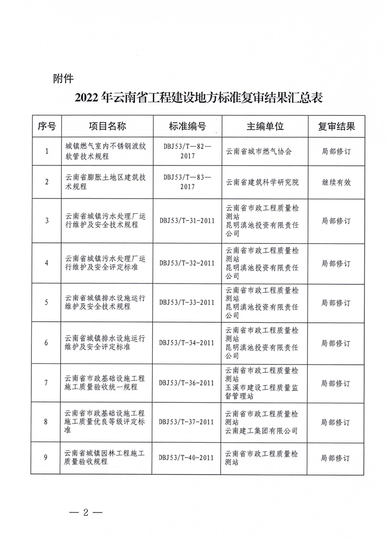 云南省住房和城鄉(xiāng)建設廳關于2022年云南省工程建設地方標準復審結(jié)果的公示