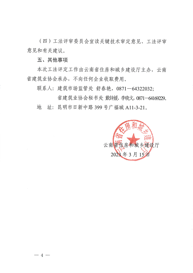 云南省住房和城鄉建設廳關于開展2022年度省級工程建設工法評審工作的通知